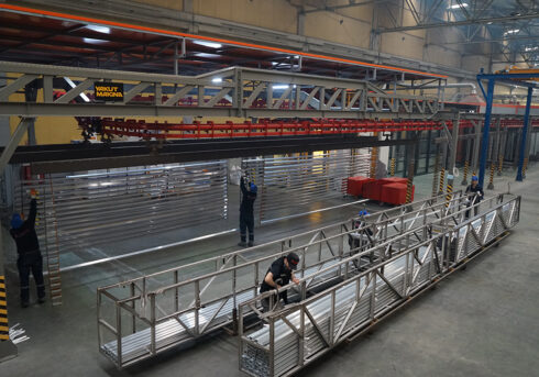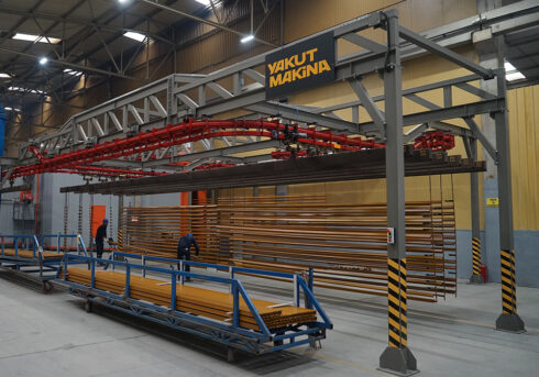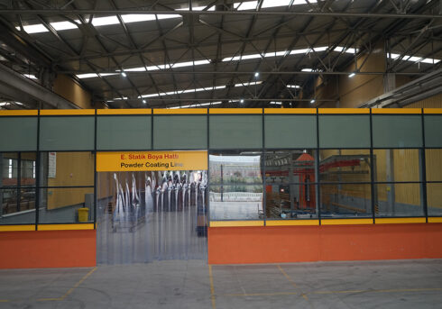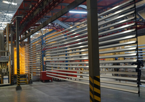 Alcas’ electrostatic powder coating line can paint 18,000 tons of aluminium profiles per year. In this line, a brushing process is carried out before passivation to improve surface quality and paint adhesion performance.